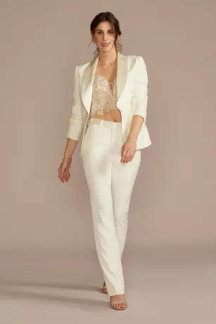 It’s your time to sparkle! Add some romance with 3D appliqued flowers, beaded applique straps, and an alluring sweetheart neckline. Pair this dazzling bridal top with a smart suit or a twirlable tulle skirt to create your perfect bridal vibe.