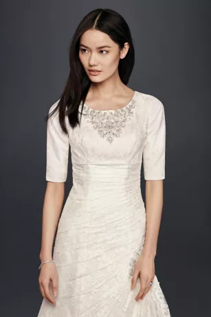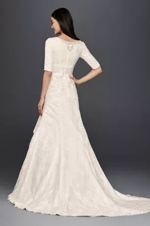 Effortlessly beautiful, this lace gown combines modern trends with classic elegance for a look that is drop-dead gorgeous.