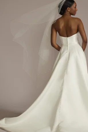 Sheer tulle veil featuring a beaded edge that catches the light with a twinkling touch.