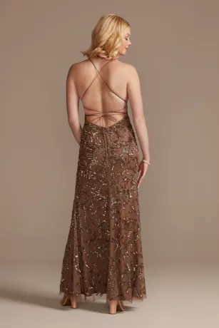 This beaded sheath gown features a sexy illusion cutout on top that pairs perfectly with the slit-accented skirt, creating a look that dazzles from head to toe. A lace-up back gives you another reason to show off with a twirl.