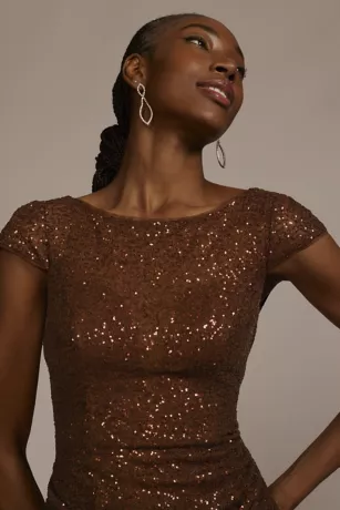 This body-hugging beauty features a party-ready sequin embellished fabric and sexy illusion neckline. Wear this to your next date night, GNO, or evening event!