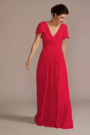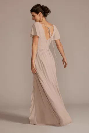 Chiffon Flutter Sleeve Ruffle Bridesmaid Dress