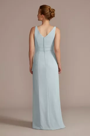 This chiffon bridesmaid dress pairs a bra-friendly tank bodice and a cascade A-line skirt with a slit and pockets: perfection!