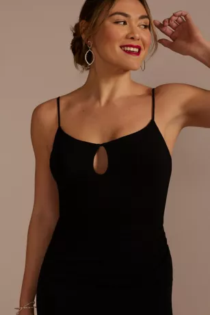 Show off your best assets in this crepe sheath dress designed with a delicately draped skirt for a flattering fit. A flirty keyhole detail at the bodice adds interest, while the thigh-high skirt slit will turn heads for all the right reasons.