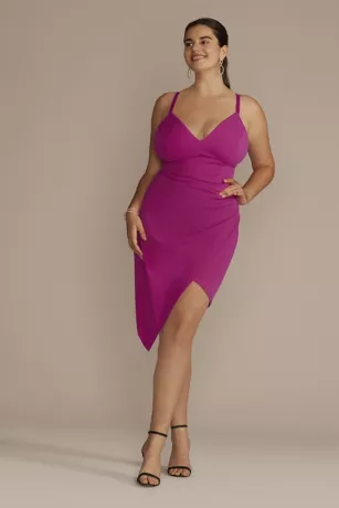 Homecoming attendees will be wowed when you walk in wearing this bombshell-inspired asymmetrical dress. Crepe fabric elevates the bodycon silhouette, while a mesh illusion back will make your grand exit one to remember.