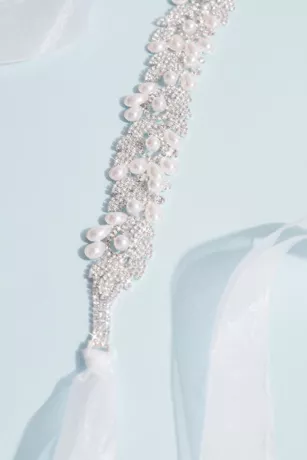 Crystal And Freshwater Pearl Filigree Leaf Sash