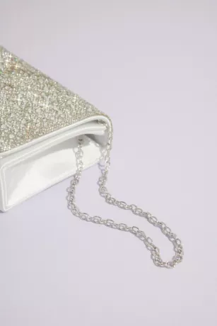 This crystal-embellished satin clutch shines from the bachelorette party to the wedding.
