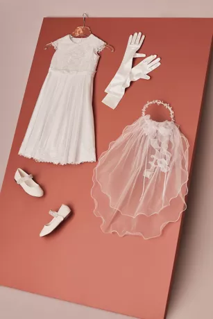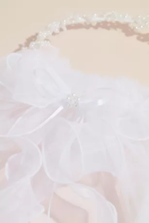 Featuring double layers of curly tulle and a twirly bow, this communion veil is both fun and fabulous.