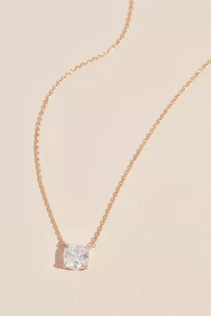 Classic and elegant, a slim chain necklace is topped with a single, cushion-cut cubic zirconia.