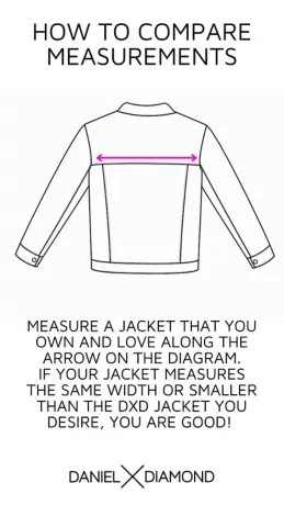 Inclusive of all gender identities, DanielXDiamond uses unisex sizing. When selecting your size, please compare the back seam measurement of a jacket you already own and love to the size chart provided. Reference the diagram included for assistance.
