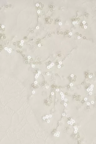 This boho-chic wedding dress is detailed with hand-stitched lace appliques and 80 pieces of flowers and beading. Skirt godets enhance the curve-hugging mermaid silhouette before cascading into a chapel train. The detachable swag sleeves let you transform your bridal look from day to night with ease.