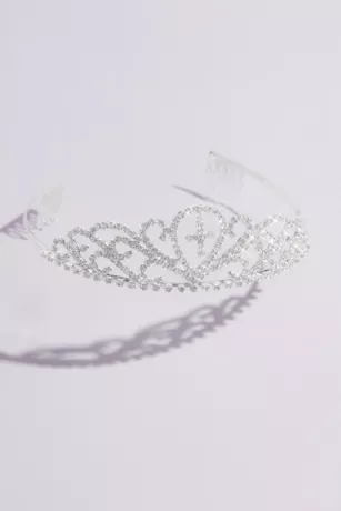 A pretty finishing touch to the first communion girl’s look, this sparkly tiara is topped with a tiny cross.