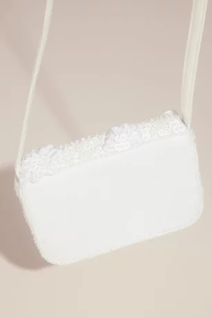 Topped with allover floral beading and a shoulder strap for easy toting, this crossbody bag is the perfect place for the flower girl to put spare petals, lip balm, trinkets, and more.