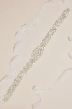Every look blooms brighter with this organza ribbon sash topped with crystal embellishments in a light-catching floral design.