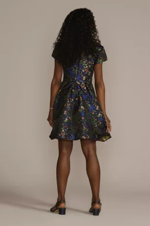 Short in length but long in reasons to love, this A-line is printed with blooming florals on jacquard fabric and features a classic V-neckline, skirt pleats, and pockets. A springtime must-have!