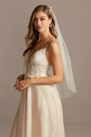 Gathered Tulle Fingertip Veil With Allover Glitter