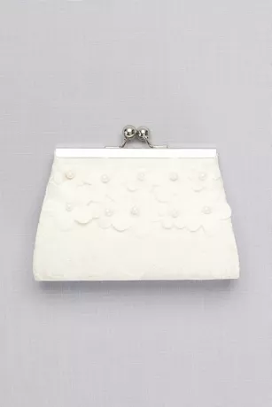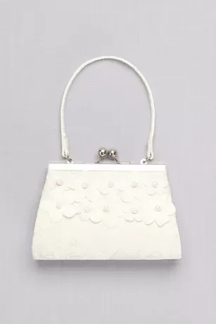A sweet little carryall for your flower girl or junior bridesmaid, this petite lace purse is blooming with pearl-centered 3D flowers.