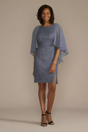 Glitter Lace Sheath Tank Dress With Capelet