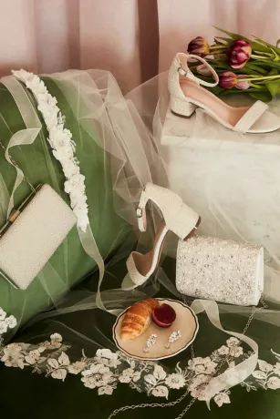 Brilliantly sparkling crystals and iridescent stones cover the front fold of this metallic crossbody bag.