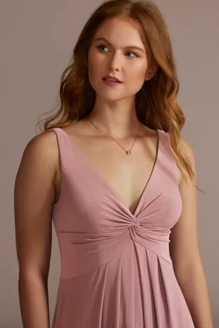 With comfy jersey fabric, a flattering empire waist, and a fun twist detail, this versatile bridesmaid dress has everything you could want in a wear-all-day dress.