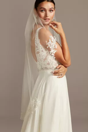 Lace Applique Pearl Scalloped Mid-Length Veil