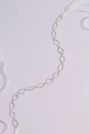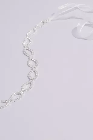 Tied with a pretty ribbon, this chic sash is adorned with crystal and rhodium links.