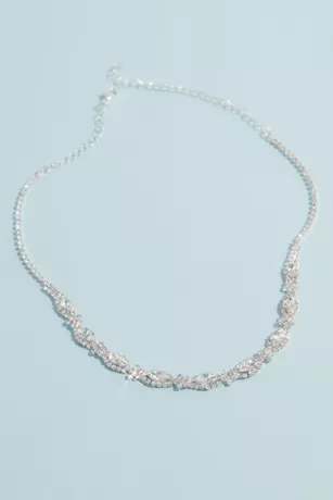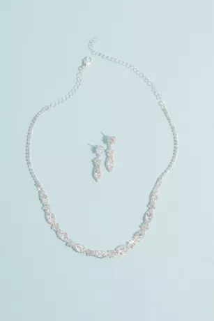 Your quincea era look will be even more regal when topped with this matching jewelry set, featuring a necklace and earrings encrusted with crystals.