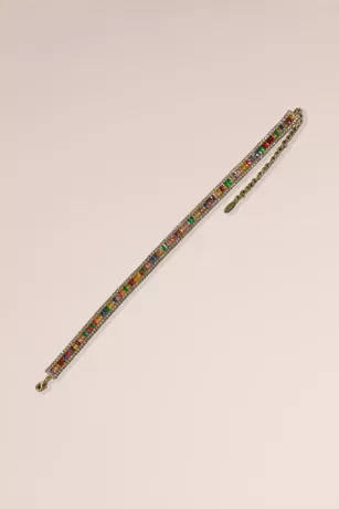 This dazzling choker necklace features multicolor baguette crystals bordered by smaller crystals that sparkle from all angles.
