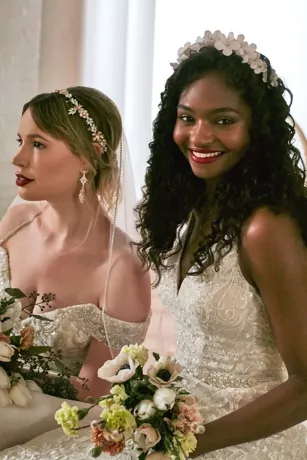 Elegantly blooming with a handmade look, this metal floral headband features painted flowers and sparkling crystals. Finished with satin ribbons.
