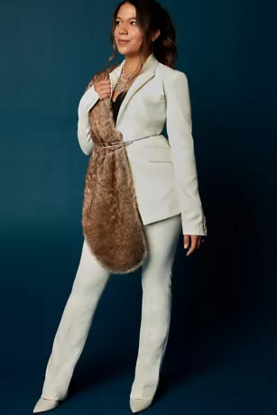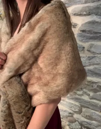 Add a luxe touch to your formal look this faux-fur wrap elegantly hugging your shoulders. A pull-through slit allows for easy, secure wear.