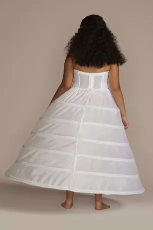 Add dramatic volume to quinceanera ball gowns with this hoop skirt slip equipped with a drawstring waist to suit all shapes and sizes.