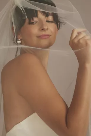 Made from recycled nylon, this tulle mid-length veil floats down the aisle with a classically romantic look.