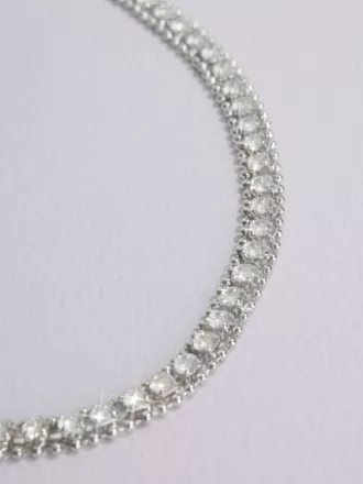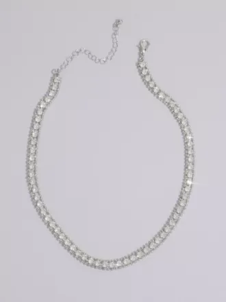 Evoke classic elegance in this collar necklace, featuring a row of round crystals bordered by smaller strands that twinkle with every move.