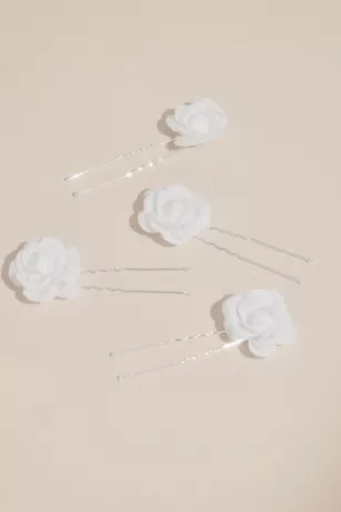 This set of four hair pins with fabric rosettes suits the flower girl perfectly.