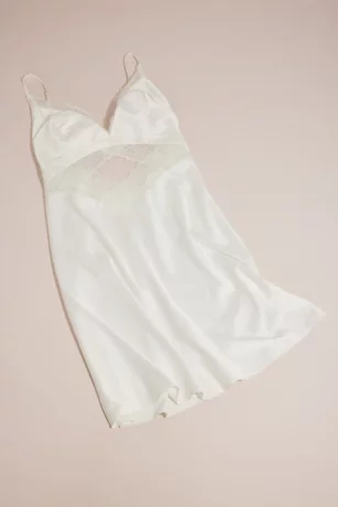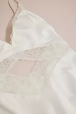 Pretty lace trims the triangle cups and alluring keyhole opening on this soft and sweet satin chemise.
