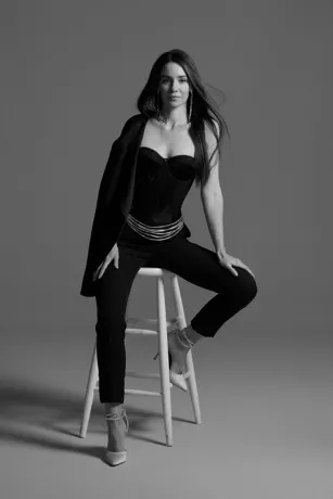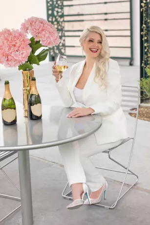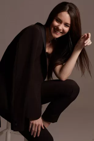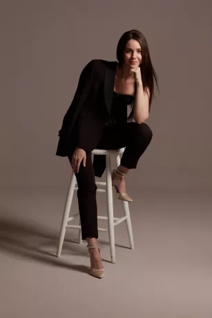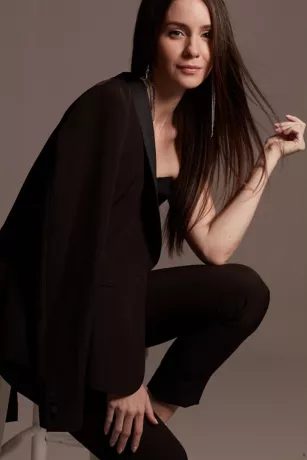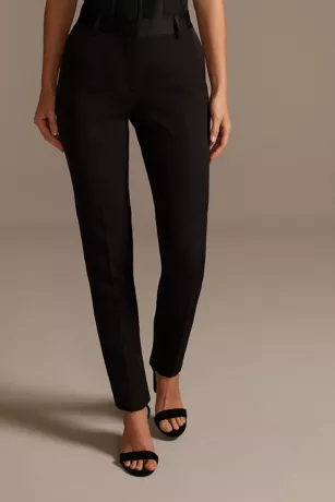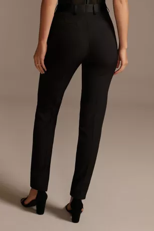 A satin waistband adds a little luster to these fitted suit pants. Pair them with a coordinating jacket and a bustier or tank for a put-together look.