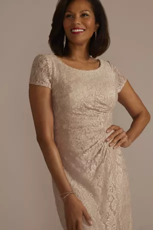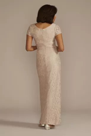 Scoop Neck Gathered Lace Sheath Dress With Slit