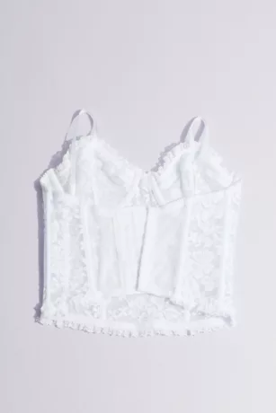 Perfect under your dress, but pretty enough to be seen (peeking out under a jacket or cardi would be cute, don’t you think?) this sheer lace bustier features lined cups and corset boning.