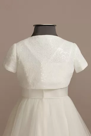This cap-sleeve sequin flower girl jacket is a fun finishing touch for your glam little girl!