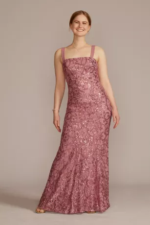 Modern in more ways than one, this classic sheath silhouette is a must-have for your next special occasion. All eyes will be on you thanks to allover lace fabric and a subtly sexy illusion detail at the waist.