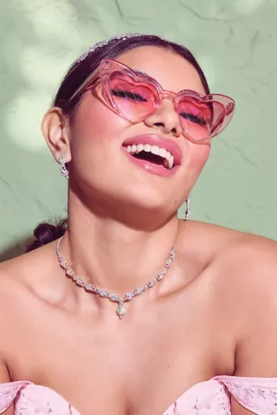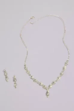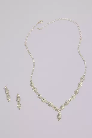 This gleaming rhinestone-encrusted jewelry set catches the light with a twinkling glow. Includes matching necklace and earrings.