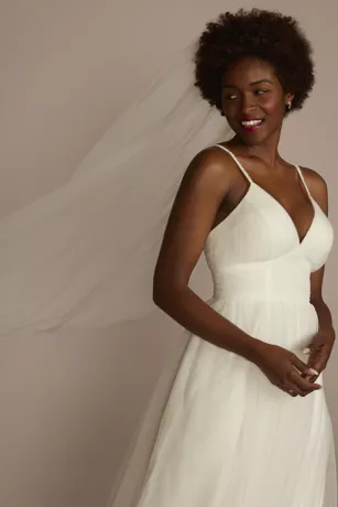 Float down the aisle in this mid-length tulle veil topped with a rhinestone-embellished comb that gives the look of your dreams the perfect touch of sparkle.