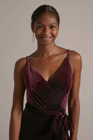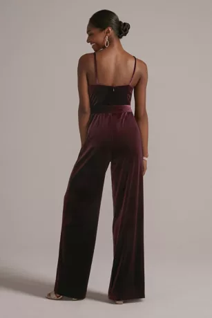 V-Neck Velvet Jumpsuit With Tie Waist